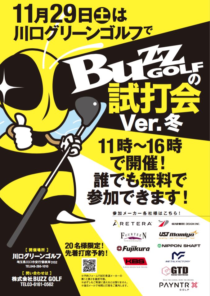 11月29日(土)は川口グリーンゴルフでBUZZ GOLFの試打会 Ver.冬