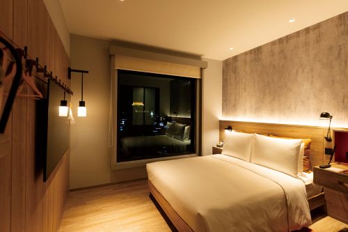 2024年にオープンしたばかり、アジア最大級のモクシーブランド。504の客室を誇る4つ星ホテルだ。バンコクの熱気をイメージする“パリピ”仕様のフロント階では疲れも吹っ飛ぶ。
