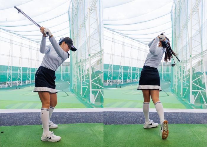 テークバックからトップは、手の位置や握り方などアドレスのほんの少しのズレで変わってくるもの。クラブの重みを利用した連続素振りならその反動を利用して、自ずと理想のトップポジションに収まってくれる。私は必ず打球練習前に実践しています。