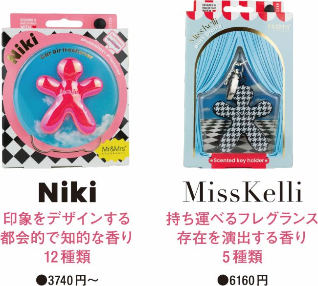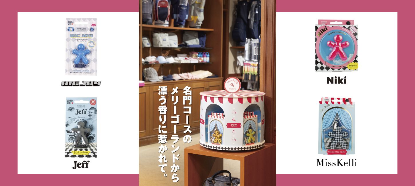 楽しげなメリーゴーランドの“香り”の正体は、イタリア発の「Mr&Mrs(ミスター アンド ミセス)」ブランドの「Miss Kelli(ミスケリー)」というキーホルダータイプのフレグランスアクセサリーだ。好みの “香り”をゴルフシーンで身につけてほしいという提案である。