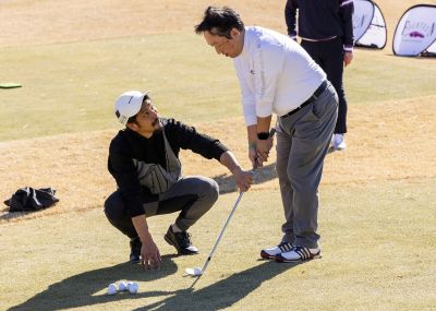 クラブを販売するメーカーとして、クラブの使い方をサポートしたい、という発想で生まれたイベント。アプローチの神・伊澤秀憲プロも趣旨に賛同し、ウェッジテクニックをサポート。