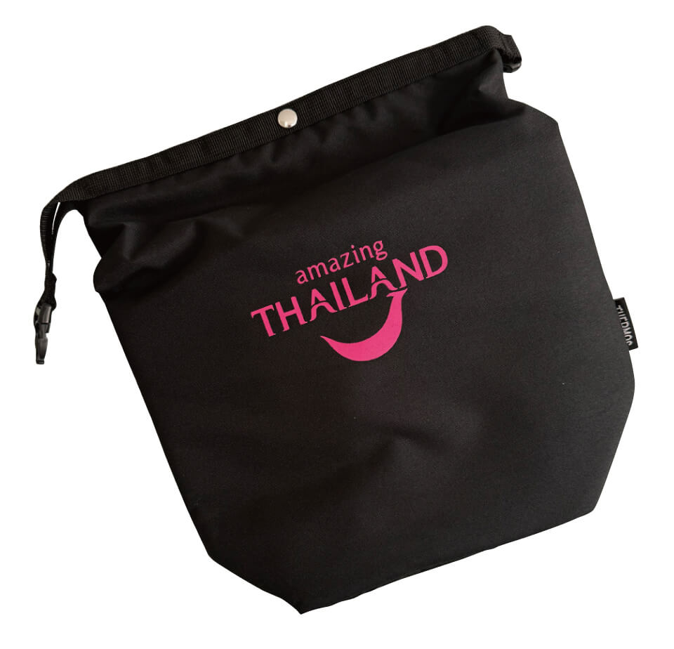 「Amazing THAILAND」のロゴがデザインされたオリジナル保冷トートバックを10名様にプレゼント。タイゴルフ旅のお供にしていただけると嬉しい。