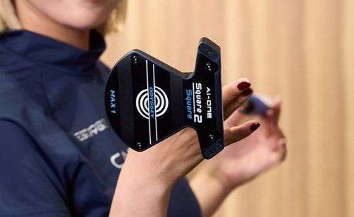 最新のオデッセイ「SQUARE 2 SQUARE」は指の腹でスイングバランスを取ると、ヘッドのトゥが真上を向く。このストローク中にフェースが開きにくいバランスを活かすために考案されたのがヘッドの重心付近からシャフトが伸びる構造。他のクラブにないこのシャフトとフェースの在り方が「使える!使えない!」の大きな争点ともなっている。